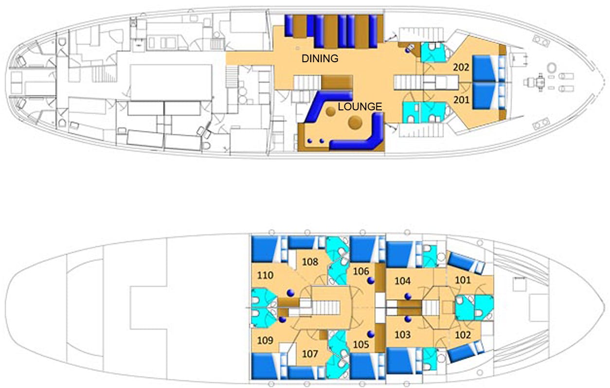 Note: Deck plan, cabin arrangements, and cabin amenities are subject to change by ship operator. Deck plan diagrams are not drawn to scale.
