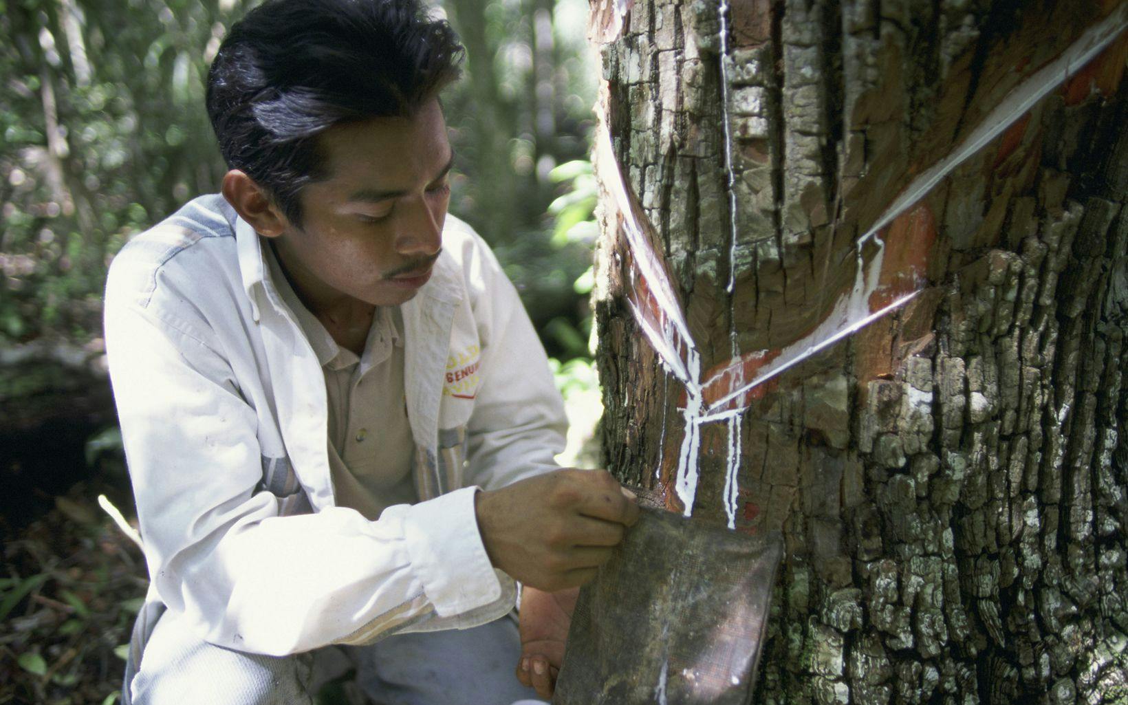 A local man taps sap from a gum tree in the Maya forest along the edge of Mexico’s Calakmul Biosphere Reserve. © Mark Godfrey/TNC